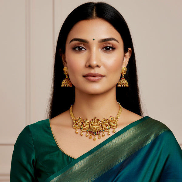 Elevate your style with our exquisite gold-plated traditional necklace. Perfect for special occasions, its intricate craftsmanship beautifully merges culture and tradition, adding a touch of timeless elegance to your look.