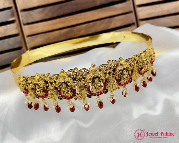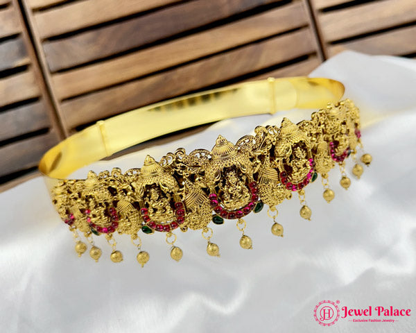 Gold Plated Temple Design Adjustable Kamarband for Kids Traditional Hip Belt.