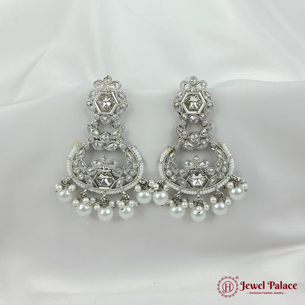 Enhance your ethnic look with our Premium Kundan Pearl Chandbali Earrings, beautifully crafted for brides and festive occasions. Designed with intricate kundan stones, antique gold detailing, and graceful pearl drops, this statement pair adds timeless elegance to any saree or lehenga. Perfect for weddings, functions, and traditional celebrations, these lightweight imitation earrings bring luxury at an affordable price. Shop now at Jewel Palace Chennai for authentic South Indian–style fashion jewellery.