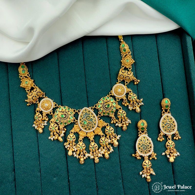 Premium Quality Gold Plated Kundan Necklace Set JH7224