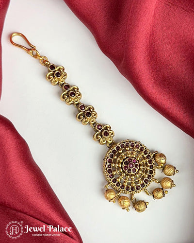 Beautiful Gold Plated Kemp Stone Temple Look Maang Tikka JH3850
