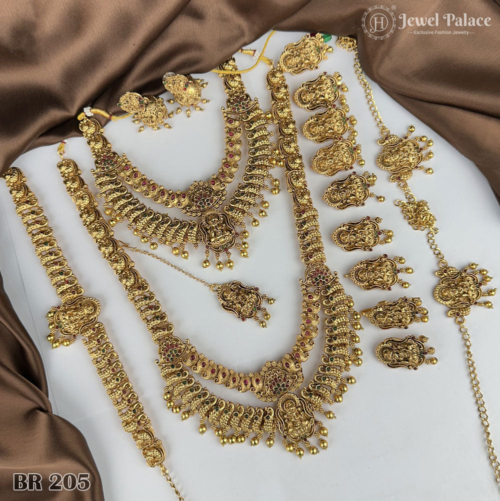 - Package Details: 1 Necklace, 1 Long Necklace/Haram, 1 Pair Of Earrings, 1 Mathapatti, 1 Hip Belt, 1 Set of Hair Accessories(9Pcs.)As Per Images, 1 Pair of Wanki