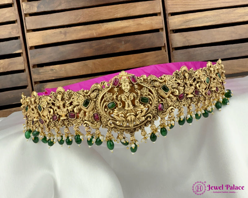Goddess Lakshmi Hip Belt with Ruby & Emerald Stones