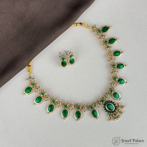 Embrace Kerala tradition with our stunning Palakka Necklace, adorned with green stones and gold tones for a timeless festive look. β¨π