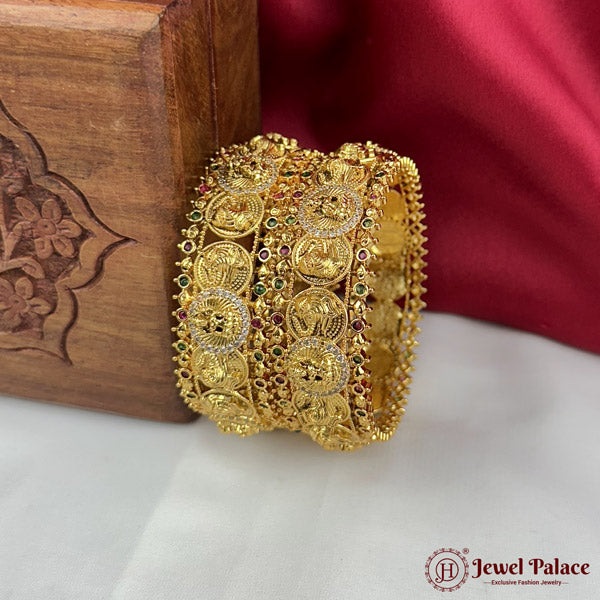 These stylish Designer Matte Finish Bangle Sets are perfect for the modern woman. Featuring 2 bangles with the latest temple matte finish, these bangles are sure to become your go-to accessory. Perfect for any occasion, they bring both class and fashion to your outfit.
