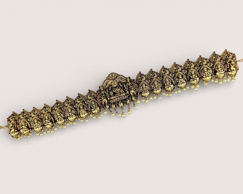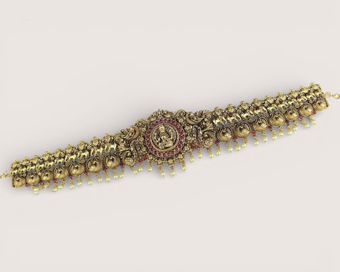 Add a touch of tradition and grandeur to your look with our Temple Hip Chains, inspired by classic South Indian temple jewellery designs. Crafted with intricate motifs, divine carvings, and antique gold finishes, these hip belts beautifully enhance sarees and bridal wear. Perfect for weddings, classical dance, and festive occasions, our temple hip chains offer a royal, elegant finish that celebrates timeless heritage and craftsmanship.