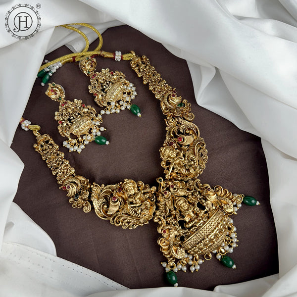 - CONTENT: Necklace In Matte Gold Finish With Earrings (as shown in the image)