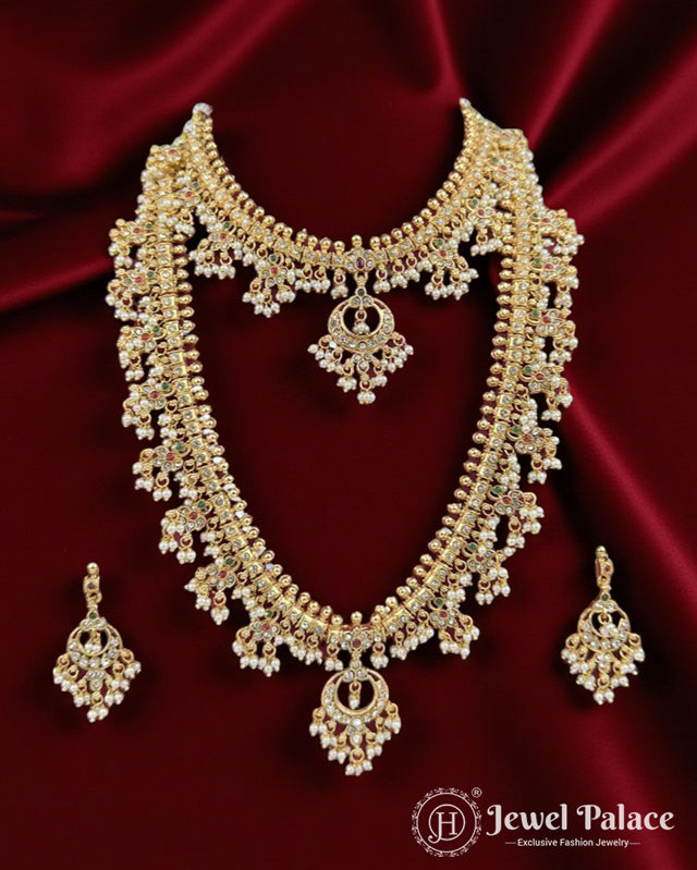 | Content In The Box | 1 Necklace | 1 Long Haram | 1 Pair Earrings Jhumka |