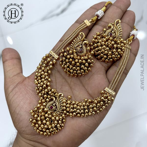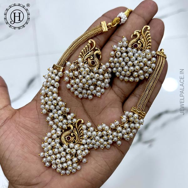 Beautiful Gold Finish Heavy Pearls Peacock Design Antique Necklace JH5438