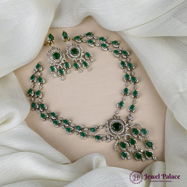 Beautiful 2 Laye AD Stone Premium Necklace With Earrings