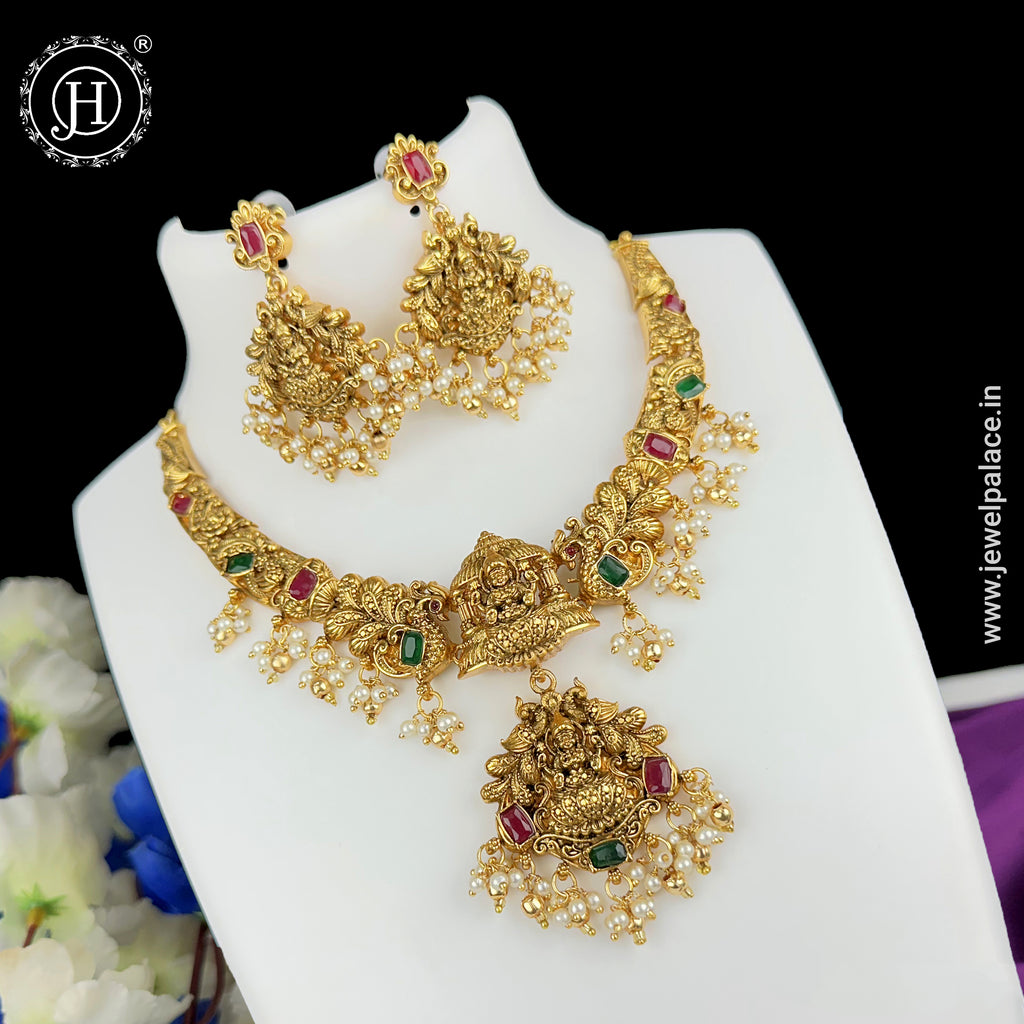 Beautiful Gold Plated Kemp Stone Laxmi Design Necklace Set JH6572