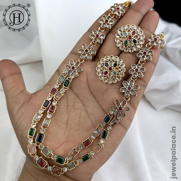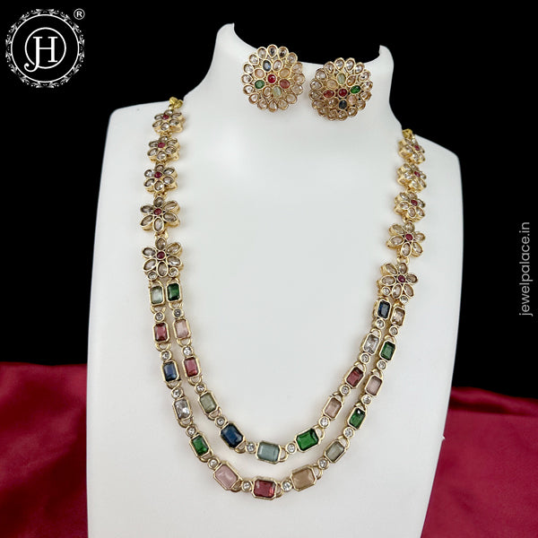 Beautiful Gold Shine With Kemp Stone Floral Design 2 Layer Necklace JH5945