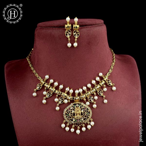 Beautiful High Quality Gold Plated Brass Temple Necklace Set JH5609