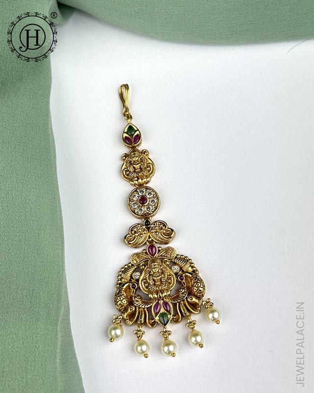 Beautiful Matte Finish Kemp Stones Pearls Temple Tikka JH5536