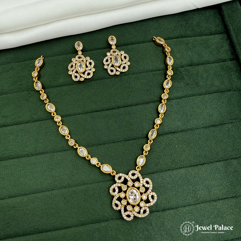 Elegant Floral Design AD Stone Premium Necklace Set JH7360