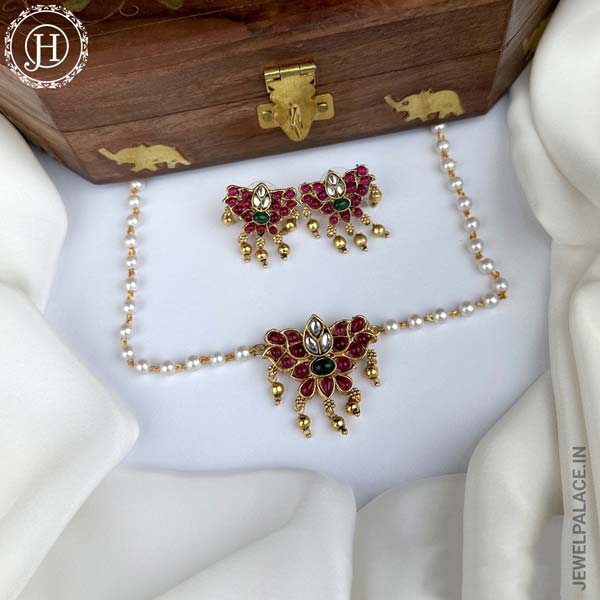 Elegant Gold Finish kemps Stone Temple Necklace JH5769