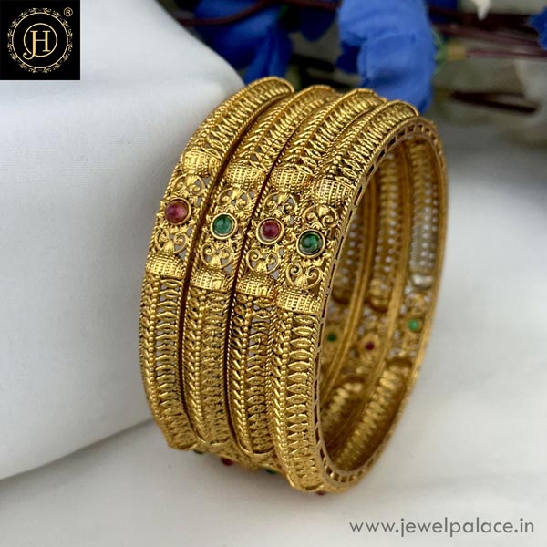 Exclusive Gold Plated Kemp Stone Temple Bangles JH6298