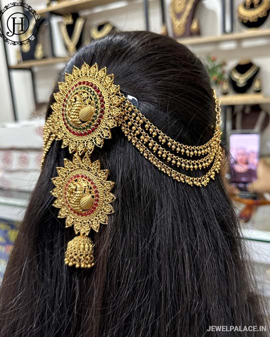Elevate your bridal charm with our Traditional South Indian "Choti Jadai Billai." This exquisite hair accessory blends delicate chains and ornate brooches to beautifully adorn your hair. Embrace the rich cultural heritage effortlessly, adding a touch of tradition to your special day. Achieve timeless elegance with this essential piece for your South Indian bridal look.