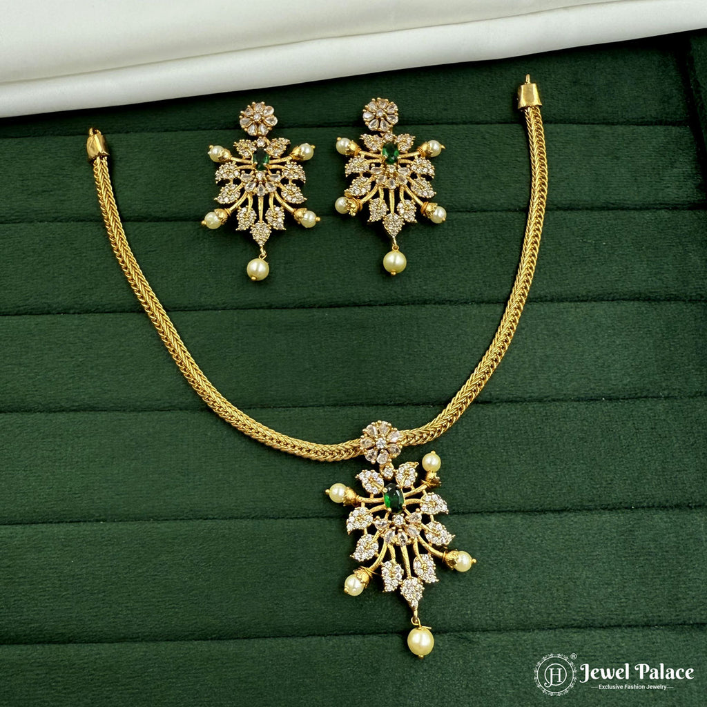 Luxurious Brass Necklace with Diamond Look Stones