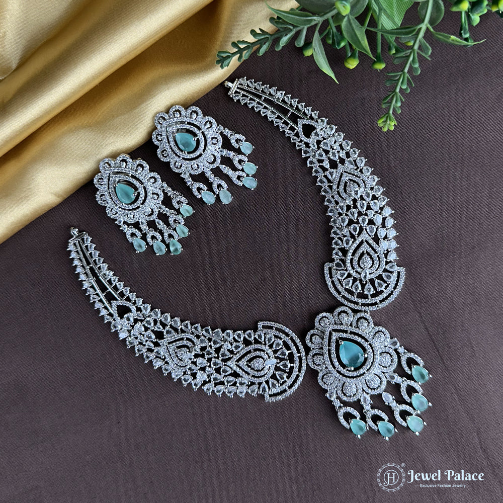 Silver Finish AD Stone Necklace Set  Elegant Bridal And  Party Jewelry