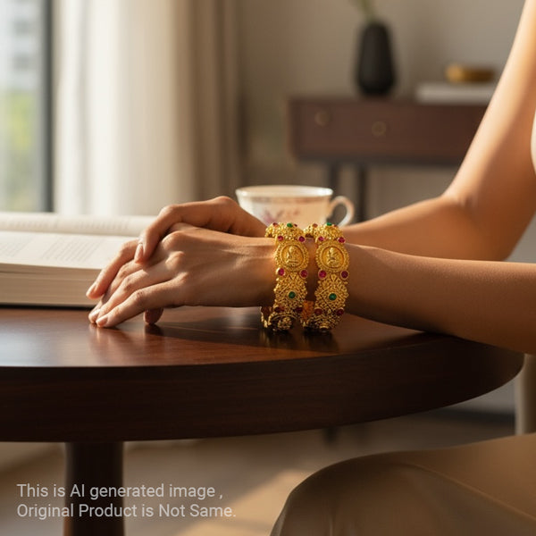 Traditional Antique Gold Temple Design Bangle Set Of 2