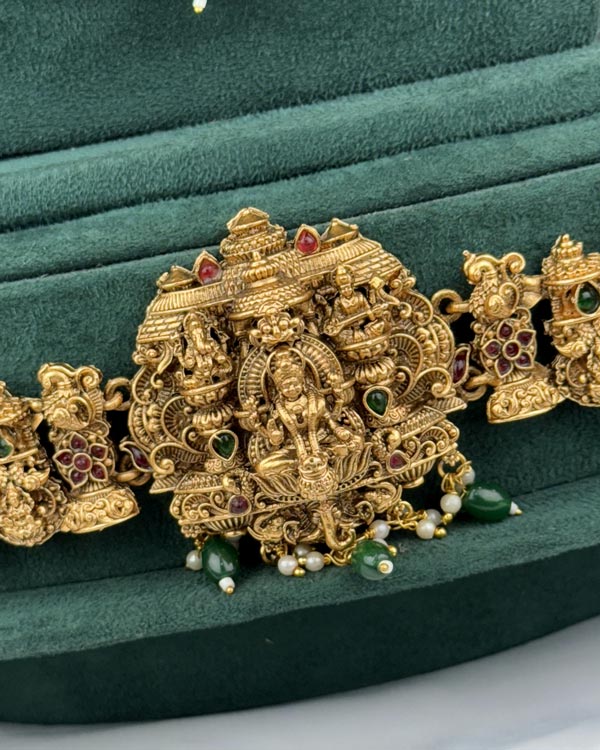 This Exclusive Gold-Plated South Indian Traditional Semi-Bridal Jewellery Set is perfect for special occasions. The exquisite design will have heads turning, crafted with luxurious gold plating for an extra special touch.