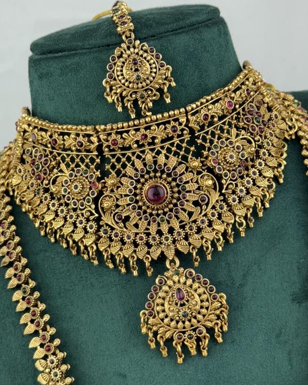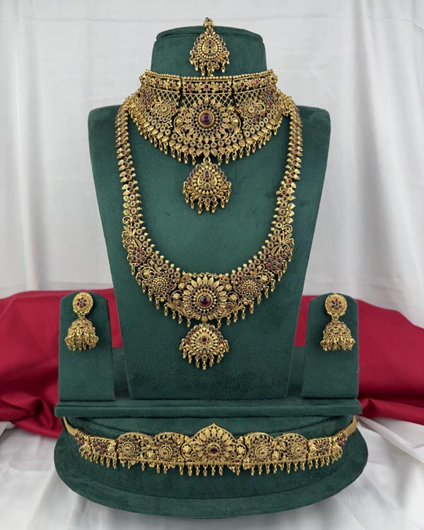 - Exclusive Designer Traditional Gold Plated Semi Bridal Set.