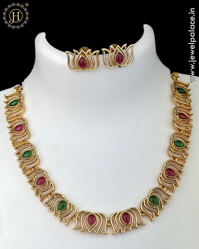 - CONTENT: Necklace In Matte Gold Finish With Earrings (as shown in the image)